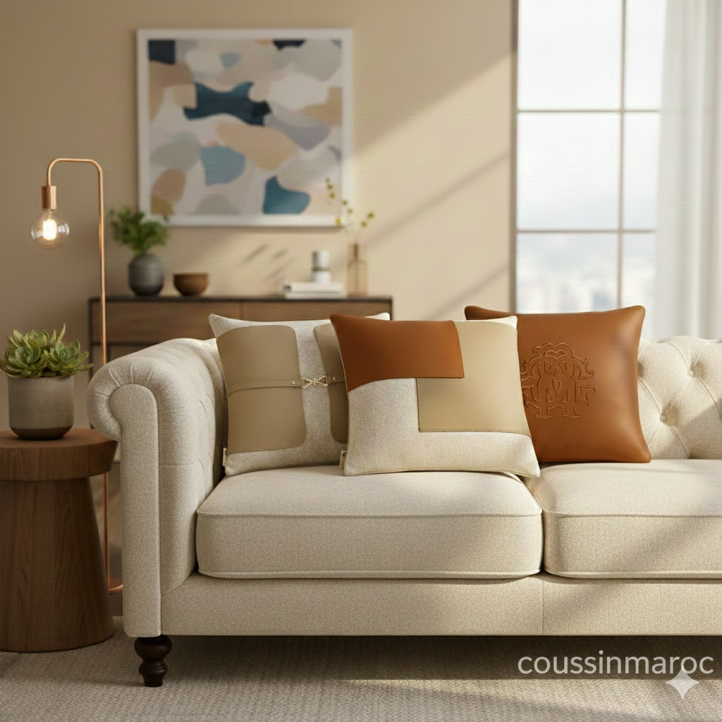 Trio de Coussins Maroc – Design Moderne en Similicuir & Tissu | Décoration Maison Élégante