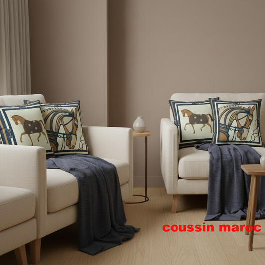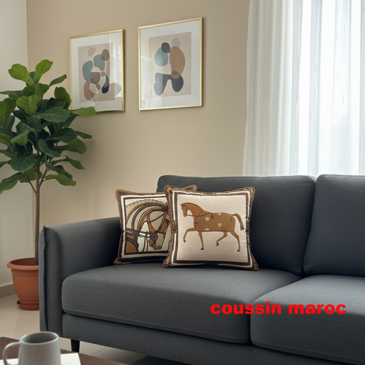 Duo de Coussins Décoratifs Équestres – Style Art & Luxe Marron