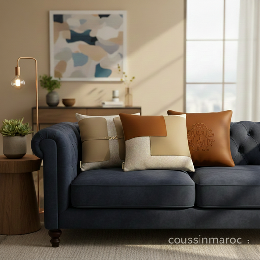 Trio de Coussins Maroc – Luxe Décoratif en Cuir & Tissu Premium